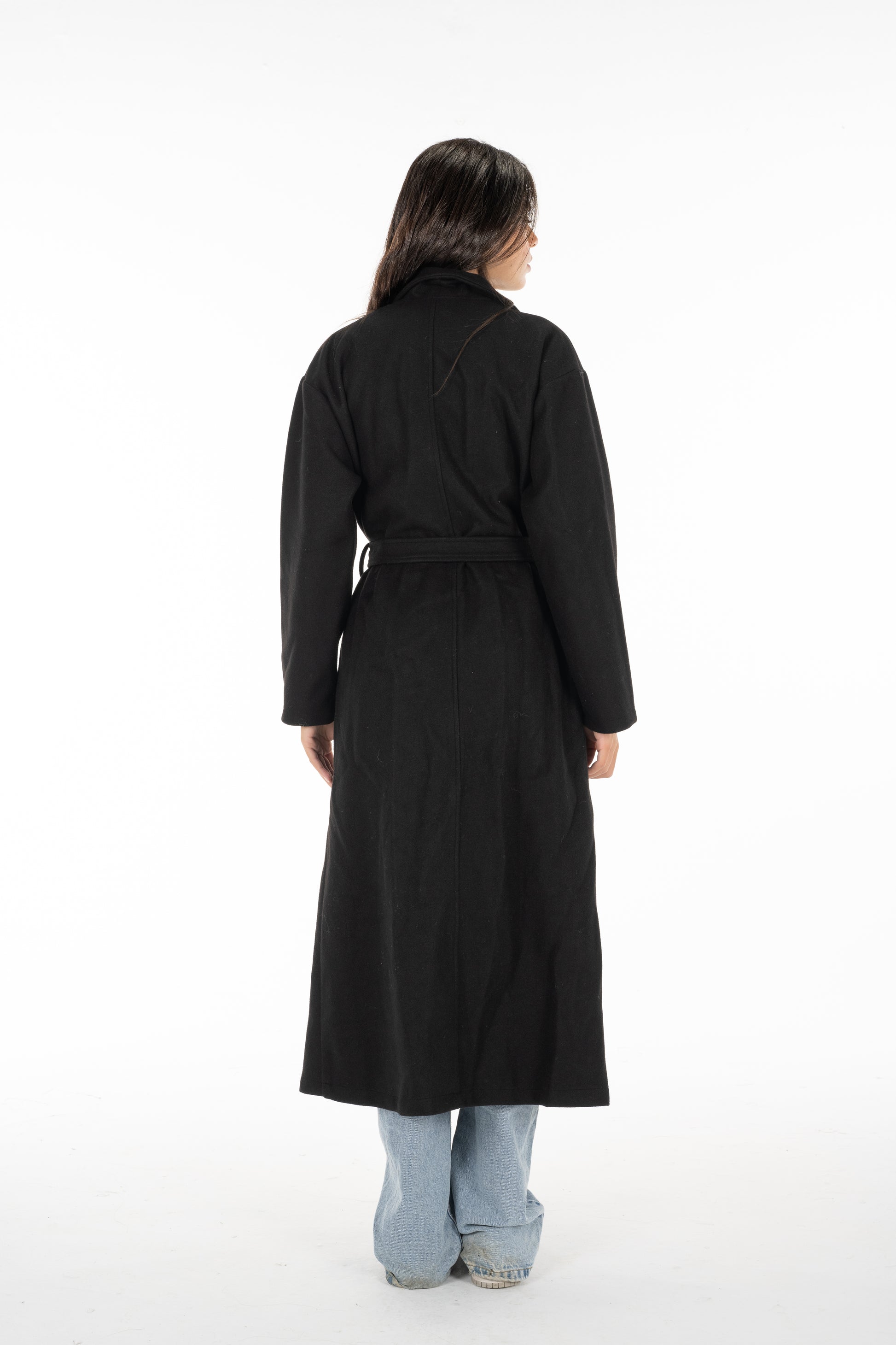 The Long Classic Coat is crafted from soft wool-like fabric for warmth, comfort, and a polished look. Its versatile design features practical pockets and a flattering silhouette, making it perfect for layering over any outfit. A timeless wardrobe staple available in multiple colors for effortless styling.