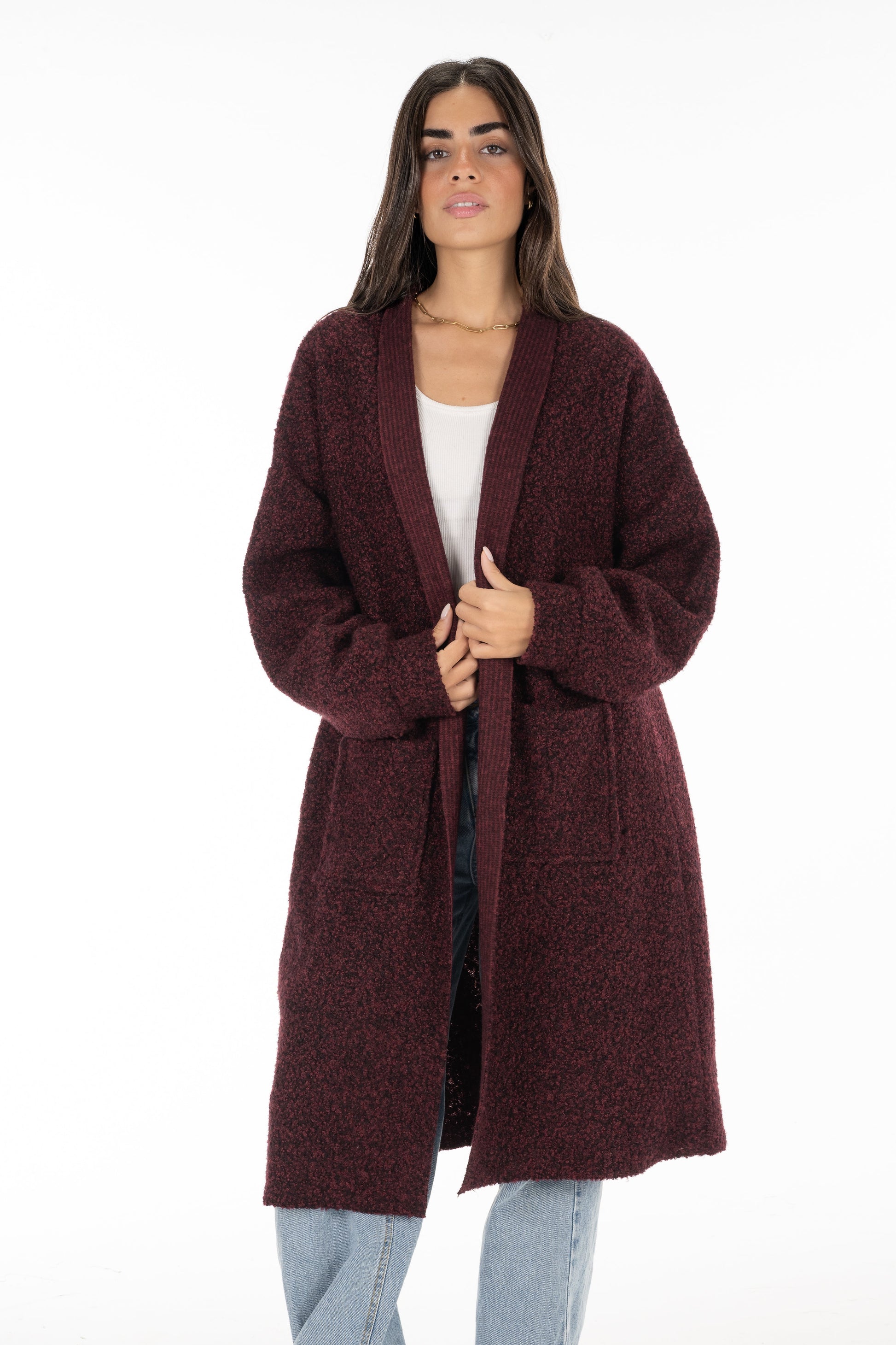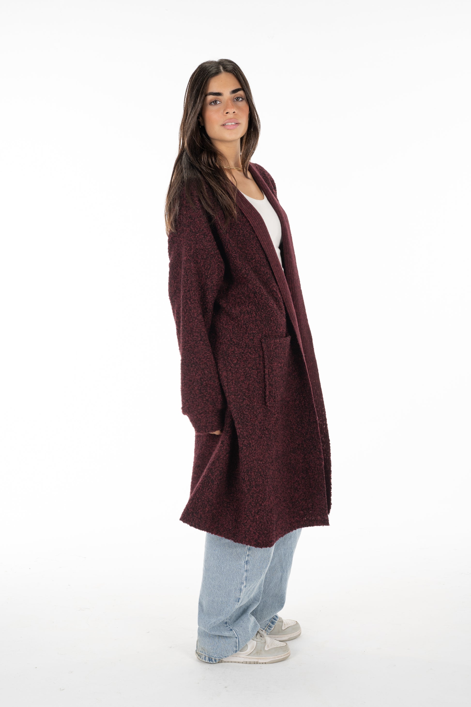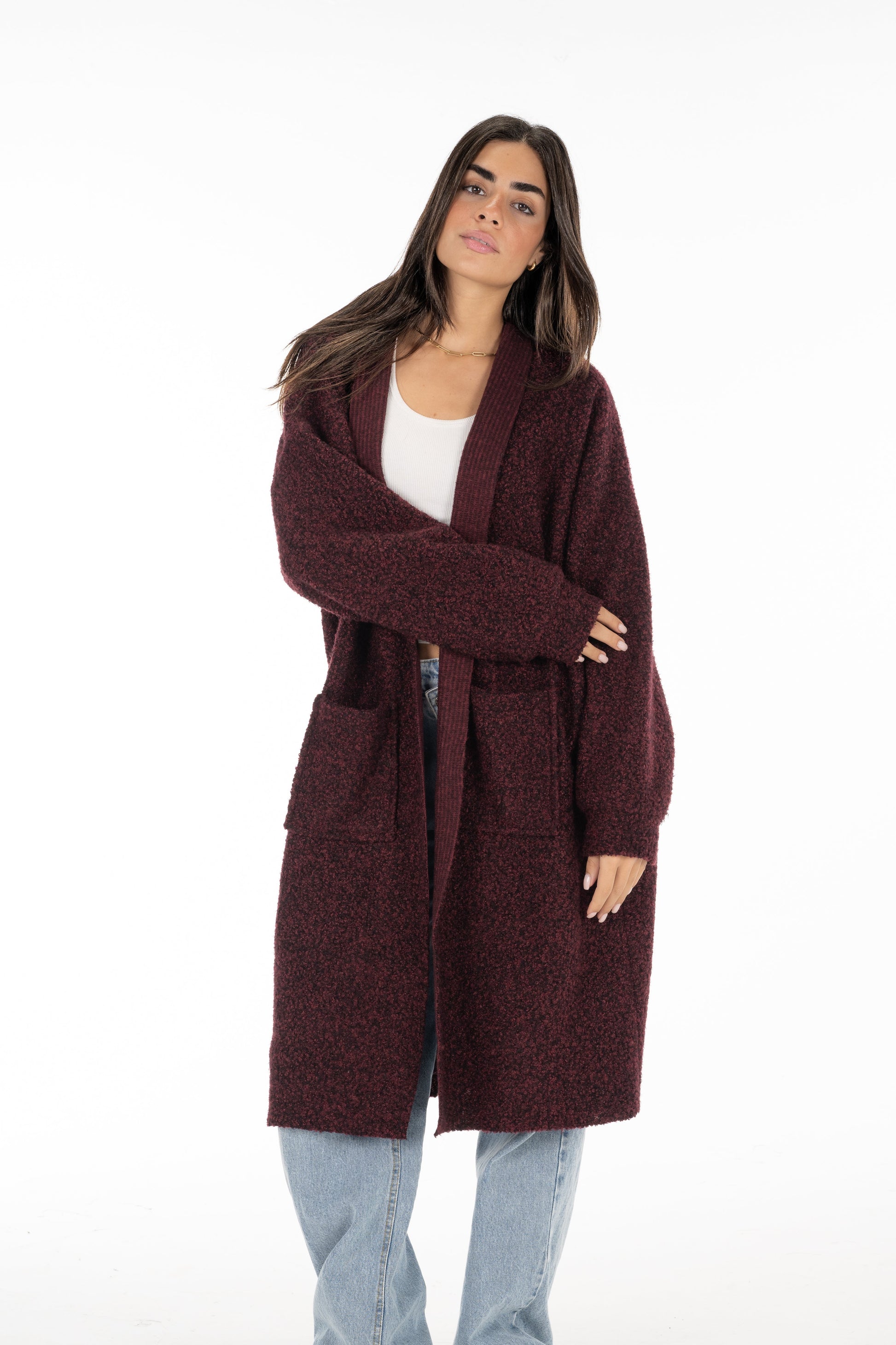 Made from a super soft, fluffy knit, the Wine Cozy Cardigan keeps you warm and comfortable. Its relaxed fit makes it perfect for layering or wearing on its own for an effortlessly chic look.